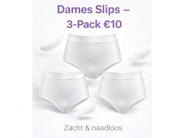 Dames slips 3-pack β β¬10Comfortabele en naadloze slips van zacht microfiber. Deze slips sluiten perfect aan op het lichaam en zijn vrijwel onzichtbaar onder kleding. Ideaal voor dagelijks gebruik dankzij het ademende en elastische materiaal.